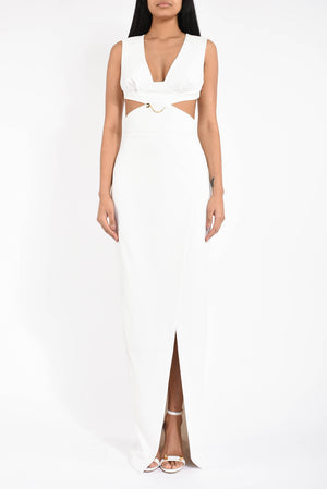 Abito lungo in crêpe leggero con cut-out